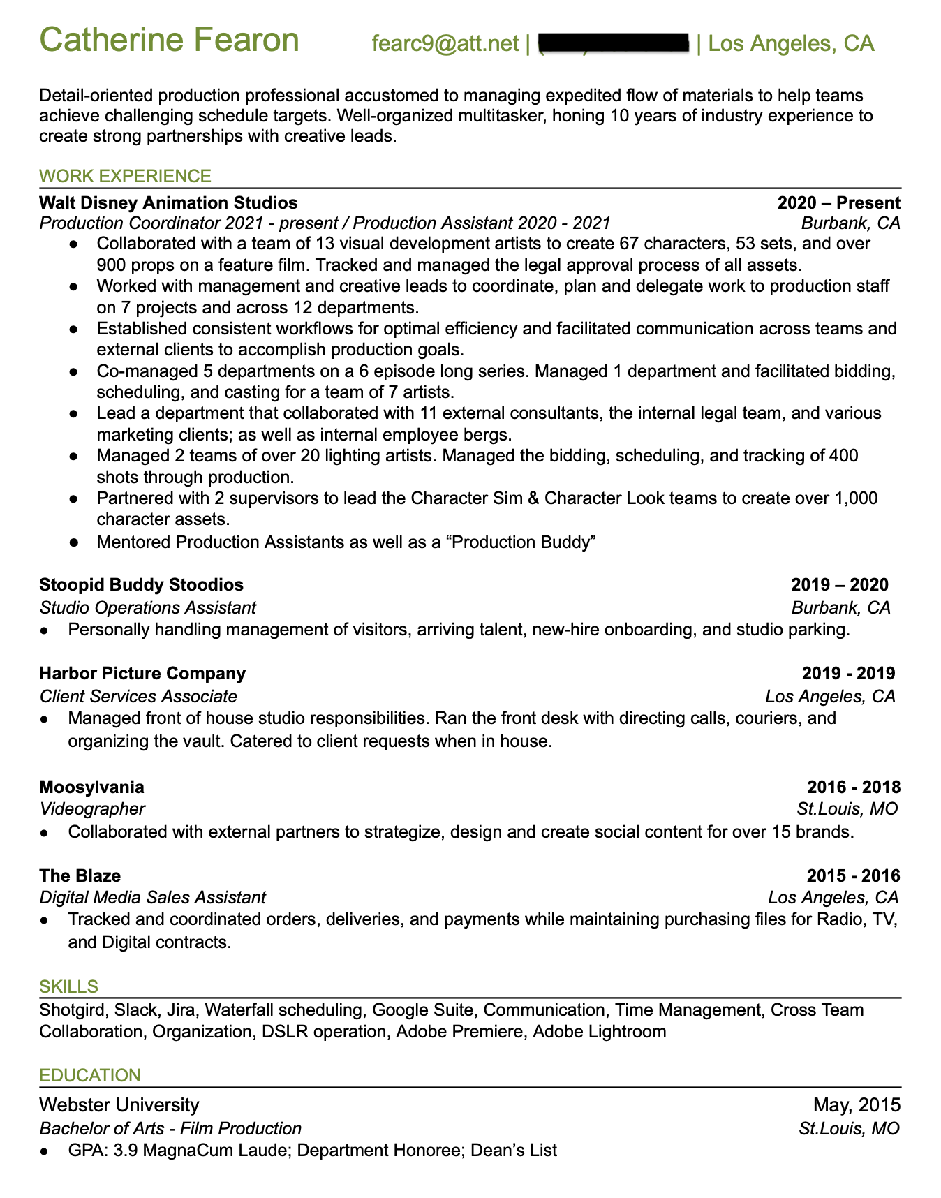 Walt Disney Animation Studios: Production Coordinator- Los Angeles, July 2021 - present